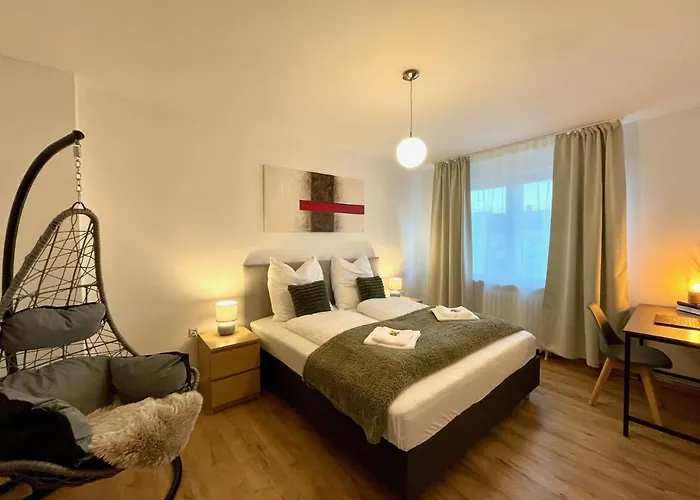 The spacious 83 m^2 Downtown Apartment By Ninja Spaces - Kingsize-Bett, Kuche, Netflix, Terrasse Wuppertal is located at a distance of 500 metres from Rathaus Elberfeld and looks out onto the inner courtyard. Schloss Luntenbeck Castle is situated approximately 4 km from the 1-bedroom apartment, while Bahnhof Wuppertal-Steinbeck lies nearly a 20-minute stroll away.